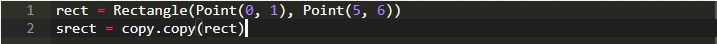 我们来看一个更复杂的例子。我要定义另一个类来表示二维矩形。我将使对象的层次结构更复杂——我的矩形将使用点对象来表示它们的坐标: