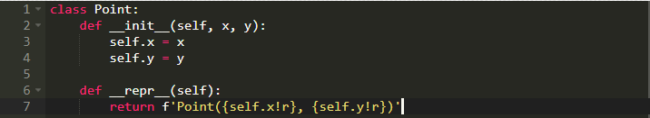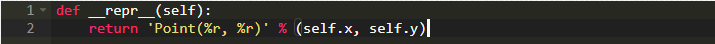注意:上面的例子使用Python 3.6的f-string来构造__repr__返回的字符串。在Python 2和Python 3之前的版本中,你需要使用不同的字符串格式表达式,例如: