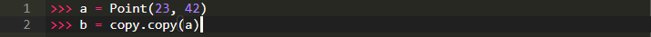 接下来,我们将创建一个点实例,然后使用copy模块进行浅拷贝: