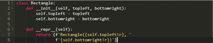 我希望你们认可这很简单。我添加了一个__repr__()实现,以便我们可以轻松地在Python解释器中检查由此类创建的对象。