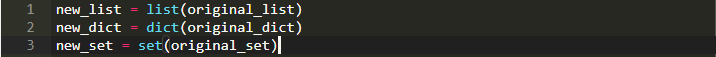 我们先看看如何拷贝Python的内置集合。通过在现有集合上调用其工厂函数即可拷贝Python的内置可变集合(如列表,字典和集合):