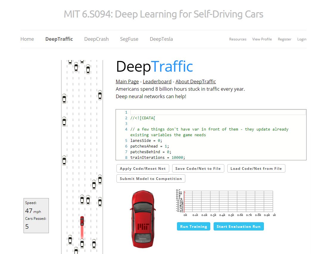 DeepTraffic 用游戏的方式来训练神经网络,模拟汽车在高速公路上行驶,我们可以在线编写神经网络代码,也可以训练、测试、提交模型,利用强化学习控制汽车、提高车速。