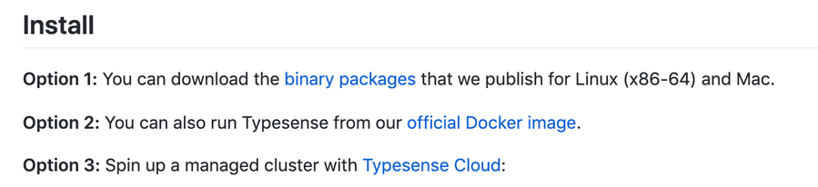 typesense 开箱即用,二进制直接搭建,对于数据量适中(不到亿级数据)的项目来说是非常好的轻量化选择。