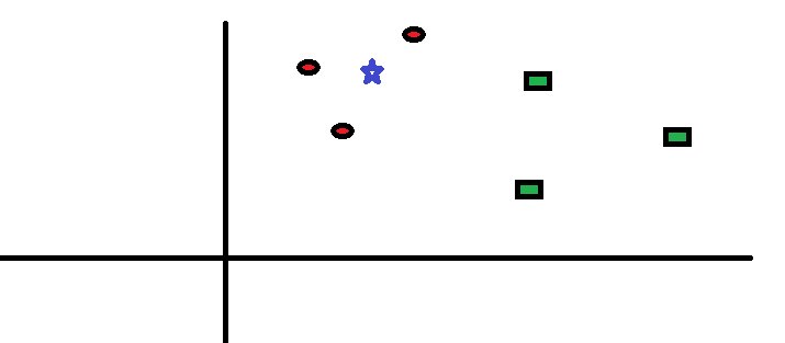 让我们通过一个简单的案例来理解这个算法。下图是红圆圈和绿方块的分布图: