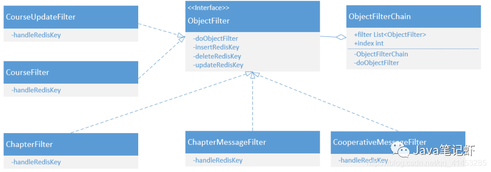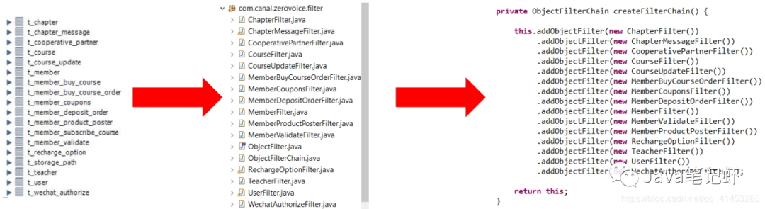 MySQL表的同步,采用责任链模式,每张表对应一个Filter。例如zvsync中要用到的类设计如下: