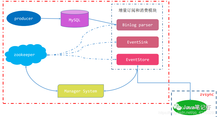 - parse解析MySQL的Bin log,然后将数据放入到sink中