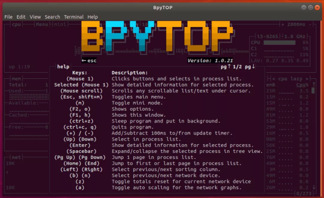 在我们深入了解这个漂亮的资源监视器之前,我们先来了解一下这个命令行工具提供了哪些功能特性: