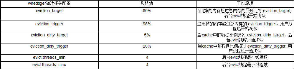 wiredtiger存储引擎cache淘汰策略相关的几个配置如下: