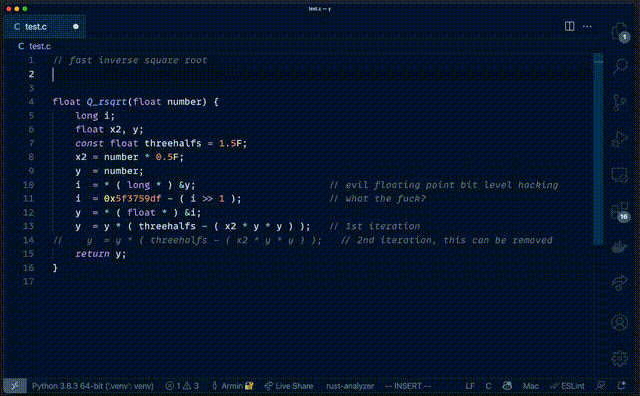这是当年在游戏《雷神之锤3》(Quake 3)中使用的一段代码,用于计算归一化向量,因其算法之简洁快速而闻名,也被叫做Quake代码。