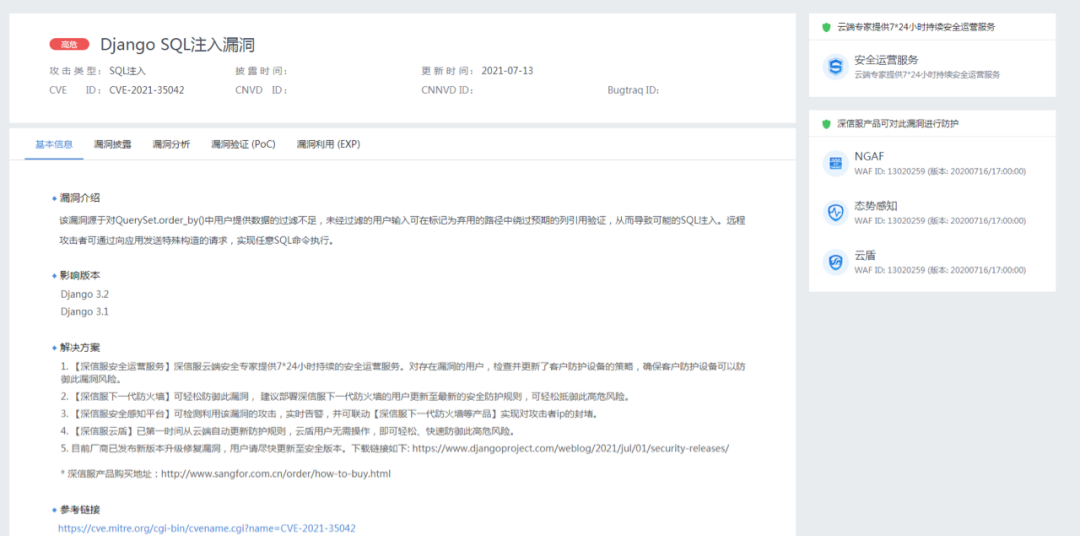 2021/7/14 深信服千里目安全实验室发布漏洞通告。