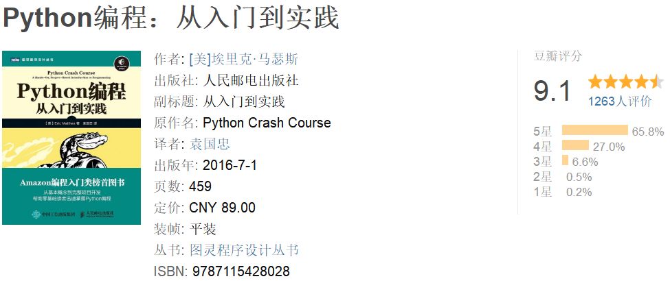 如果是,那你来对地方了,以我个人经验,开始学习一门新的编程语言是相当困难和耗时的,这也是我今天要和大家分享这本书的原因,不卖关子了,在我眼里最适合初学者入门Python的书是——《Python编程:从入门到实践》,据说本书销量已经高达30万+