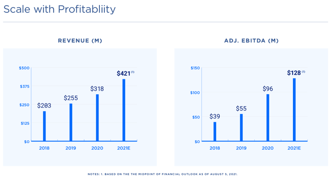 接下来,DigitalOcean 向我们展示了他们的全年收入和调整后 EBITDA 指南。他们预计 2021 年的 EBITDA 为约 1 美元/股,同比收入增加约 32%。这些结果令人印象深刻,尤其是当您考虑业务的早期性质及其运营的市场时。