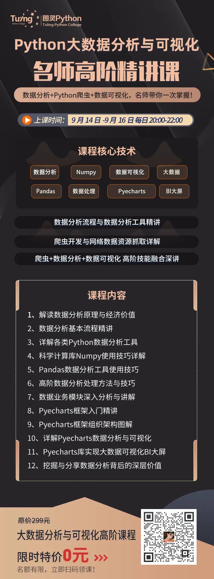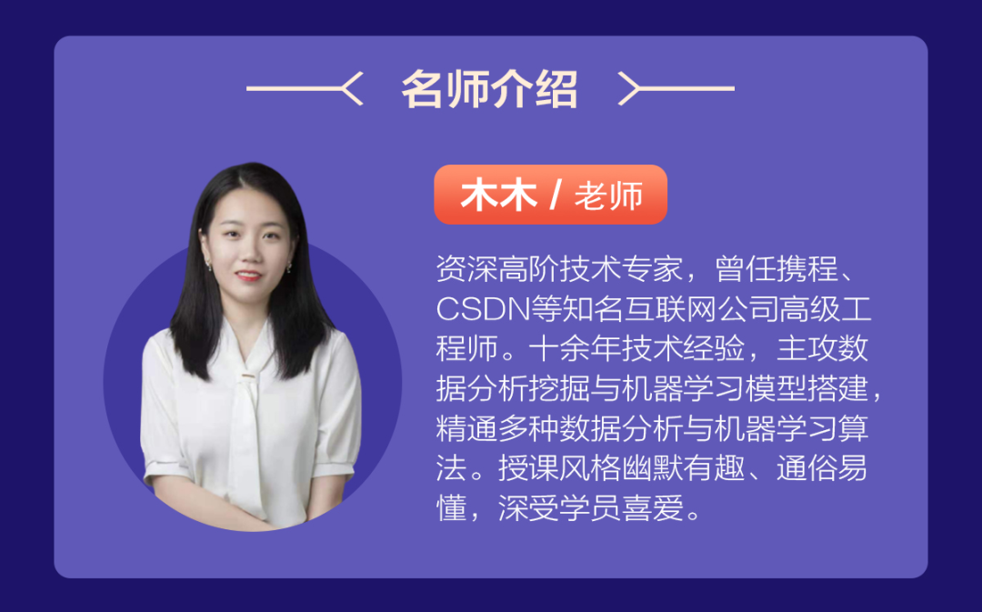 既然自学费时又麻烦,我建议你直接来参加《Python大数据分析与可视化》名师速成课。课程由前携程高级Python工程师——木木老师联合腾讯课堂,专为初学者量身打造!