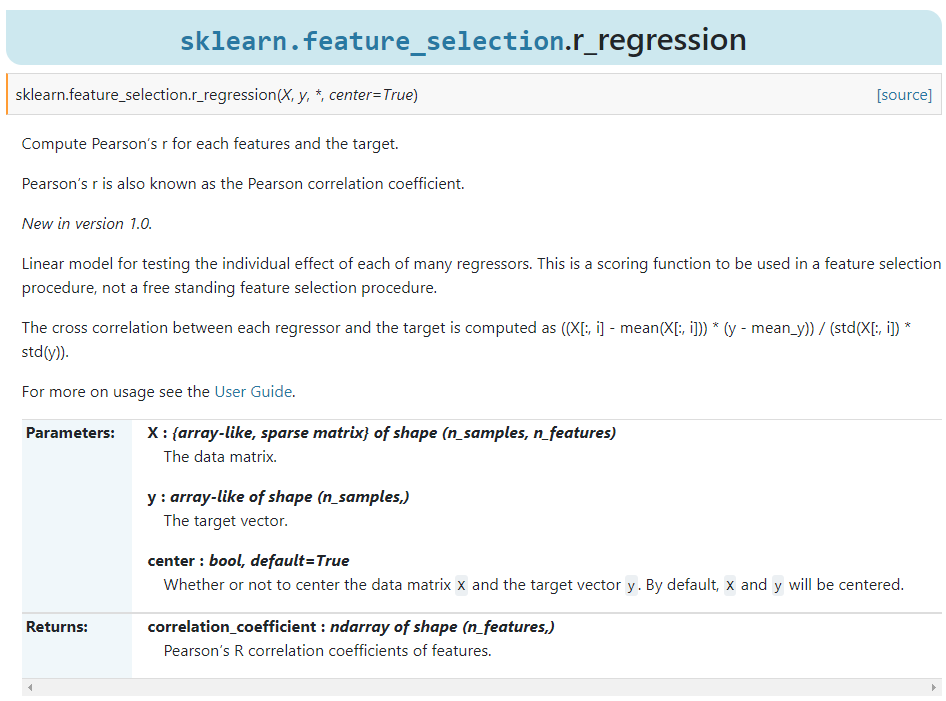 在新版本中新增了sklearn.feature_selection.r_regression(),可以用来快速计算各个自变量与因变量之间的皮尔逊简单相关系数来辅助特征工程过程。