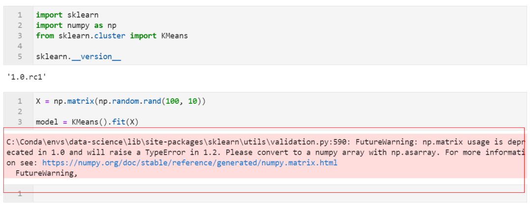 从1.0版本开始,scikit-learn中的各种算法模型在接受numpy中的matrix类型输入时,会打印「弃用警告」,且从未来的1.2