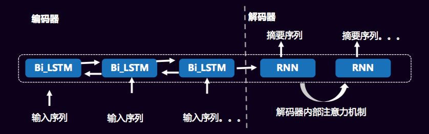对于生成式摘要,采用Encode-Decoder模型结构,两者都为神经网络结构,输入原文经过编码器编码为向量,解码器从向量中提取关键信息,组合成生成式摘要。当然,还会在解码器中引入注意力机制,以解决在长序列摘要的生成时,个别字词重复出现的问题。
