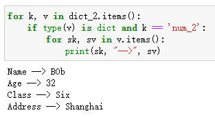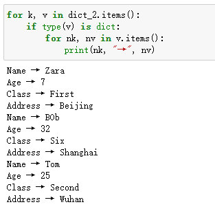 通过if语句判断value值是不是字典,如果是,则使用前面提到的方法 3,使用 .items( ) 进行迭代输出。