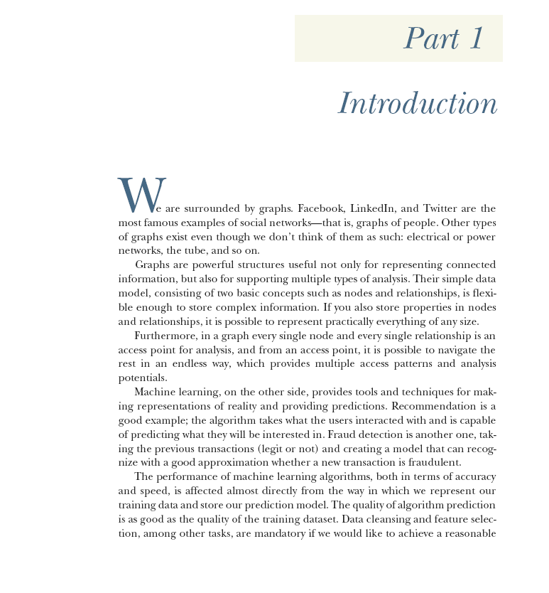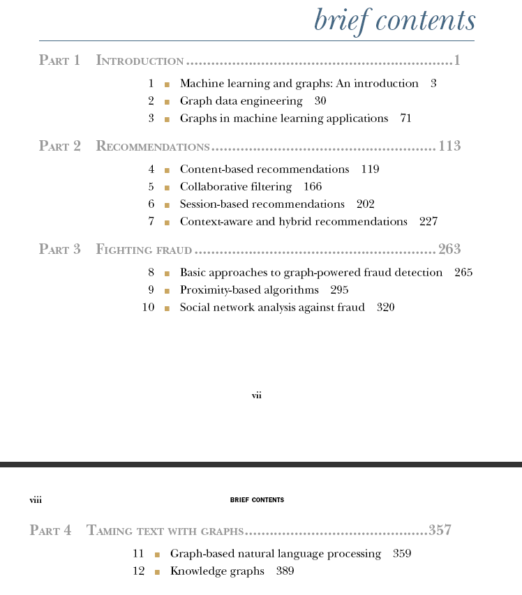 这本书分为四部分,共12章。第一部分介绍了书中的主要主题,从通用机器学习和图的概念开始,然后转移到将这些概念结合起来的好处: