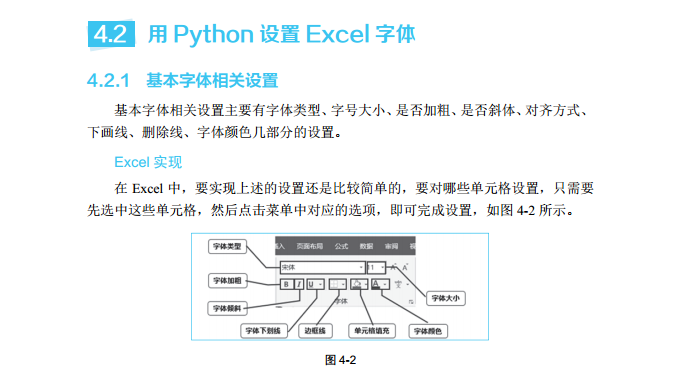 如下为书中用 Python 设置 Excel 字体的部分内容展示: