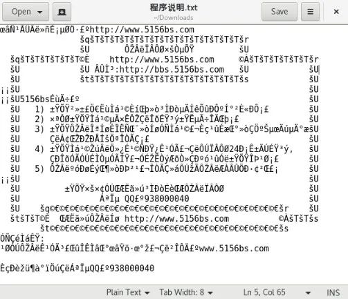就比如说你使用 UTF-8 编码方式打开 GB2312 编码格式的文件就会出现乱码。示例:“牛”这个汉字 GB2312 编码后的十六进制数值为 “C5A3”,而 “C5A3” 用 UTF-8 解码之后得到的却是 “ţ”。