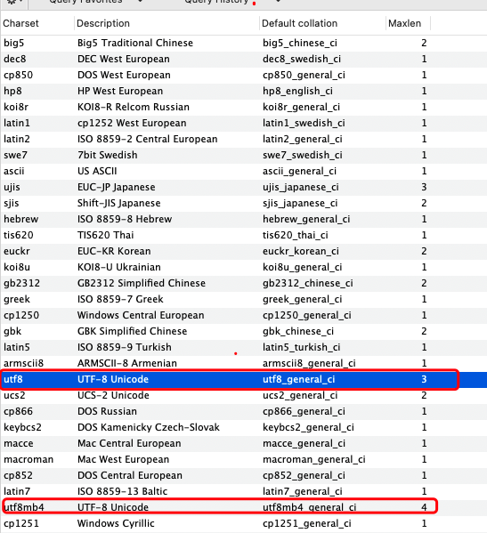 MySQL 字符编码集中有两套 UTF-8 编码实现:utf8