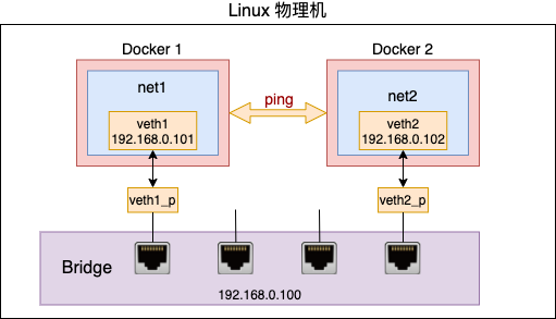 这样我们就在 Linux 上创建出了一个虚拟的网络。
