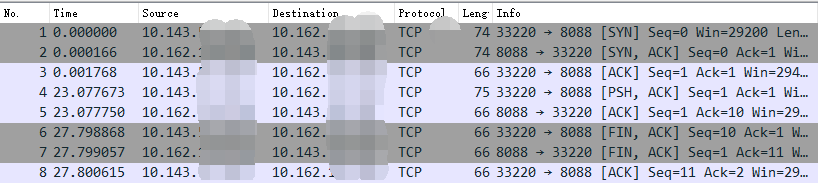 开启抓包, # tcpdump -i eth0 host 10.143.*.*