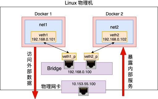 通过 veth、namespace 和 bridge 我们在一台 Linux 上就能虚拟多个网络环境出来。而且它们之间、和宿主机之间都可以互相通信。