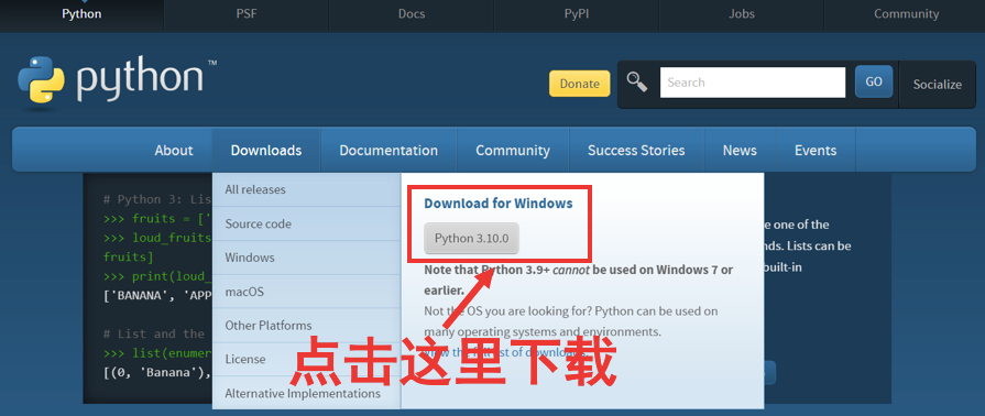 现在看起来到了专业领域,不要怕!你的操作非常简单!点开Python官网,直接下载就行。很easy,妈妈看了都放心!
