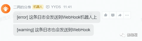 logger.warning('[warning] 这条日志也会发送到WebHook', robot=True)
