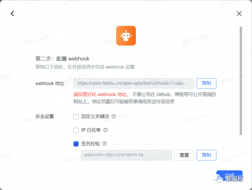 为了安全,我这里还开启了【签名校验】,即如果你通过中间人攻击抓我的包,包中的内容是加密的,而我的后端程序会使用这个签名校验秘钥对加密内容进行解析,获得真实数据,与 WebHook 交互代码如下: