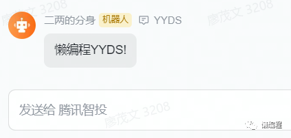 BaseMsgBot().send_base_msg('懒编程YYDS!')