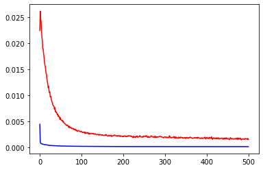 plt.plot(history.history['loss'],c='blue') # 蓝色线训练集损失
