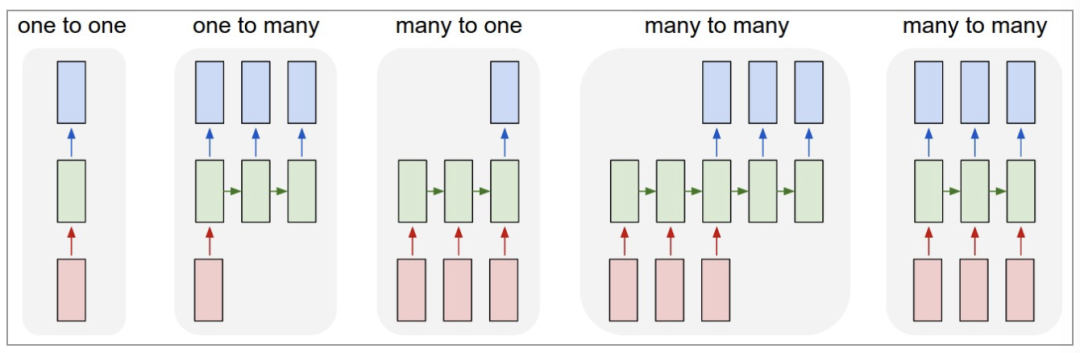 (1)one to one:其实和全连接神经网络并没有什么区别,这一类别算不上 RNN。