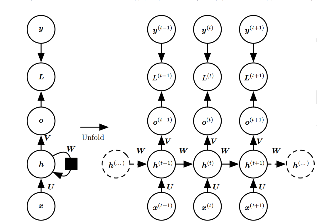 RNN除了接受每一步的输入x(t),同时还会连接输入上一步的反馈信息——隐藏状态h(t-1),也就是当前时刻的隐藏状态 ℎ(t) 由当前时刻的输入 x(t)和上一时刻的隐藏状态h(t-1)共同决定。