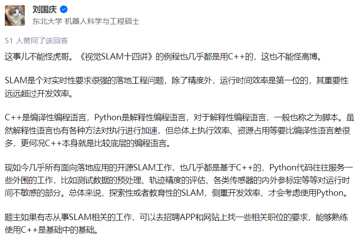 SLAM知识星球嘉宾刘国庆在知乎做了回答