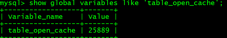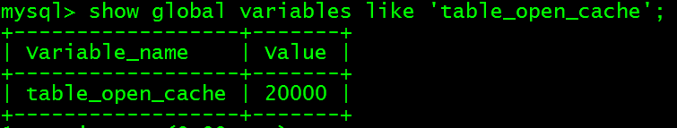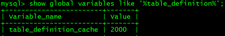 重启MySQL实例,令修改的配置文件生效。根据前面对源码的分析,计算公式default_value= min (400 + table_cache_size / 2, 2000)=2000,此时配置文件中的设置无效,应以计算结果生效。进入数据库中查看生效值:
