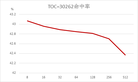 为了更加清晰的分析TOC对性能的影响,我们统计了每个并发下独立测试的缓存命中率并绘制成曲线进行比较: