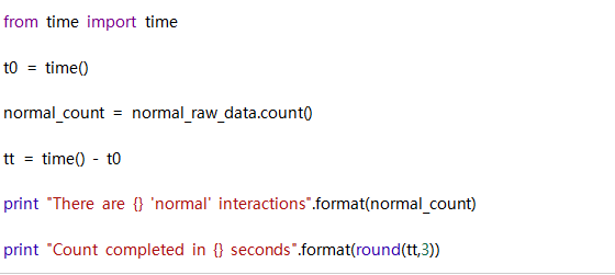 假设我们要计算我们在数据集中有多少正常的相互作用。,可以按如下过滤我们的raw_data RDD。