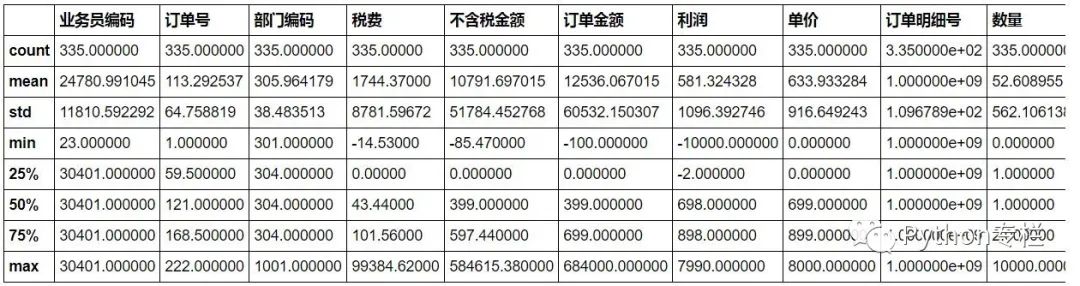 df2=sale[['订单明细号','存货分类', '税费', '不含税金额', '订单金额', '利润', '单价','数量']]