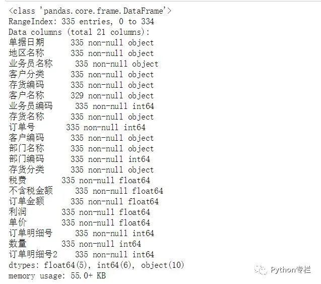 #列的行数小于index的行数的说明有缺失值,这里客户名称329<335,说明有缺失值