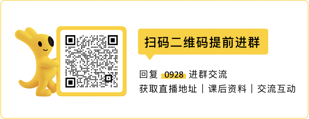 授课时间:09月28日(周三) 10:00-11:00授课方式:腾讯会议(会议号:330-482-922)1. 扫描下方二维码添加小助手微信,回复关键词「0928」进活动微信群交流,开播会有提醒噢~