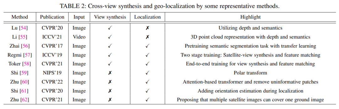讨论:大多数跨视图合成和地理定位方法都假定参考图像精确地位于任何查询图像的位置。尽管如此,在实践中,这两种观点在方向和空间位置方面通常并不完全一致。因此,如何在具有挑战性的条件下应用跨视图合成和地理定位方法是一个有价值的研究方向。