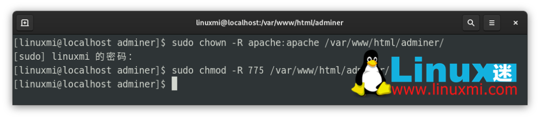 [linuxmi@localhost adminer]$ sudo chmod -R 775