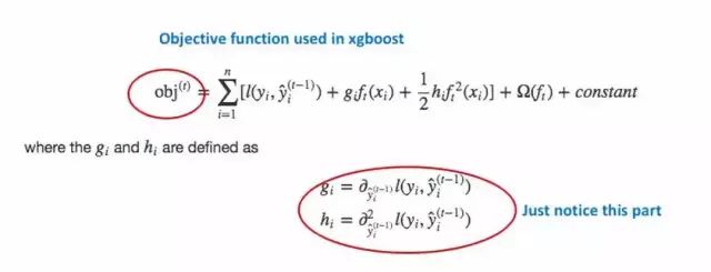 XgBoost中使用的目标函数。注意对一阶和二阶导数的依赖性