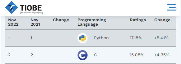 大家好!先说条新闻,编程语言排行榜(Tiobe)发布了11月新榜,Python仍领先Java和C,在全球众多的老牌编程语言中,以其他对手无法企及的极高份额稳居榜单第一位。