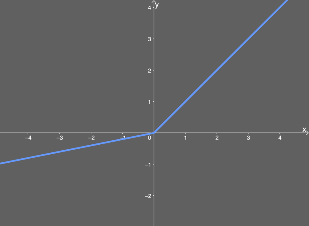 下面给出了 Leaky ReLU 的图示,其中假设 α 值为 0.2: