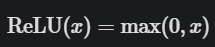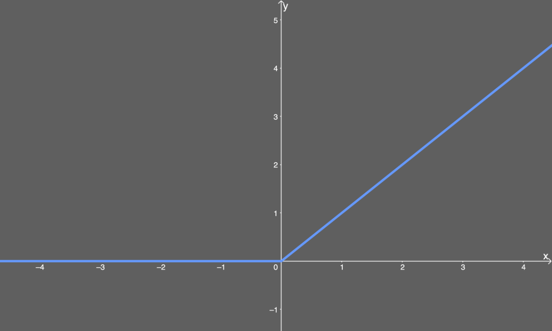 尽管我们没法用大多数工具绘制其图形,但你可以这样用图解释 ReLU。x 值小于零的一切都映射为 0 的 y 值,但 x 值大于零的一切都映射为它本身。也就是说,如果我们输入 x=1,我们得到 y=1。