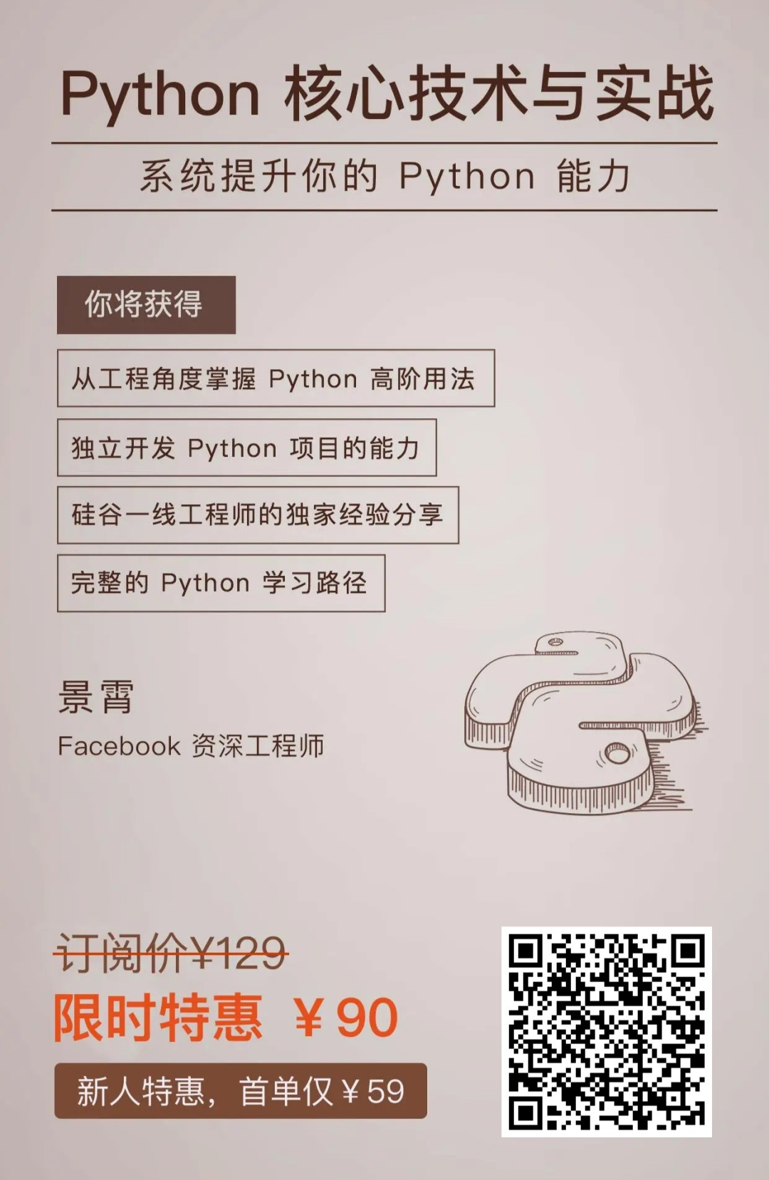 这个课程原价 ¥129 。今日极客时间 7 折秒杀,¥90 到手,如果你是新用户,那只需要 ¥59,真的很划算,推荐给大家: