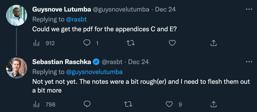 Sebastian Raschka 表示,目前附录 C 和附录 E 的内容还在整理中,访问链接尚未公布,读者需要稍加等待。